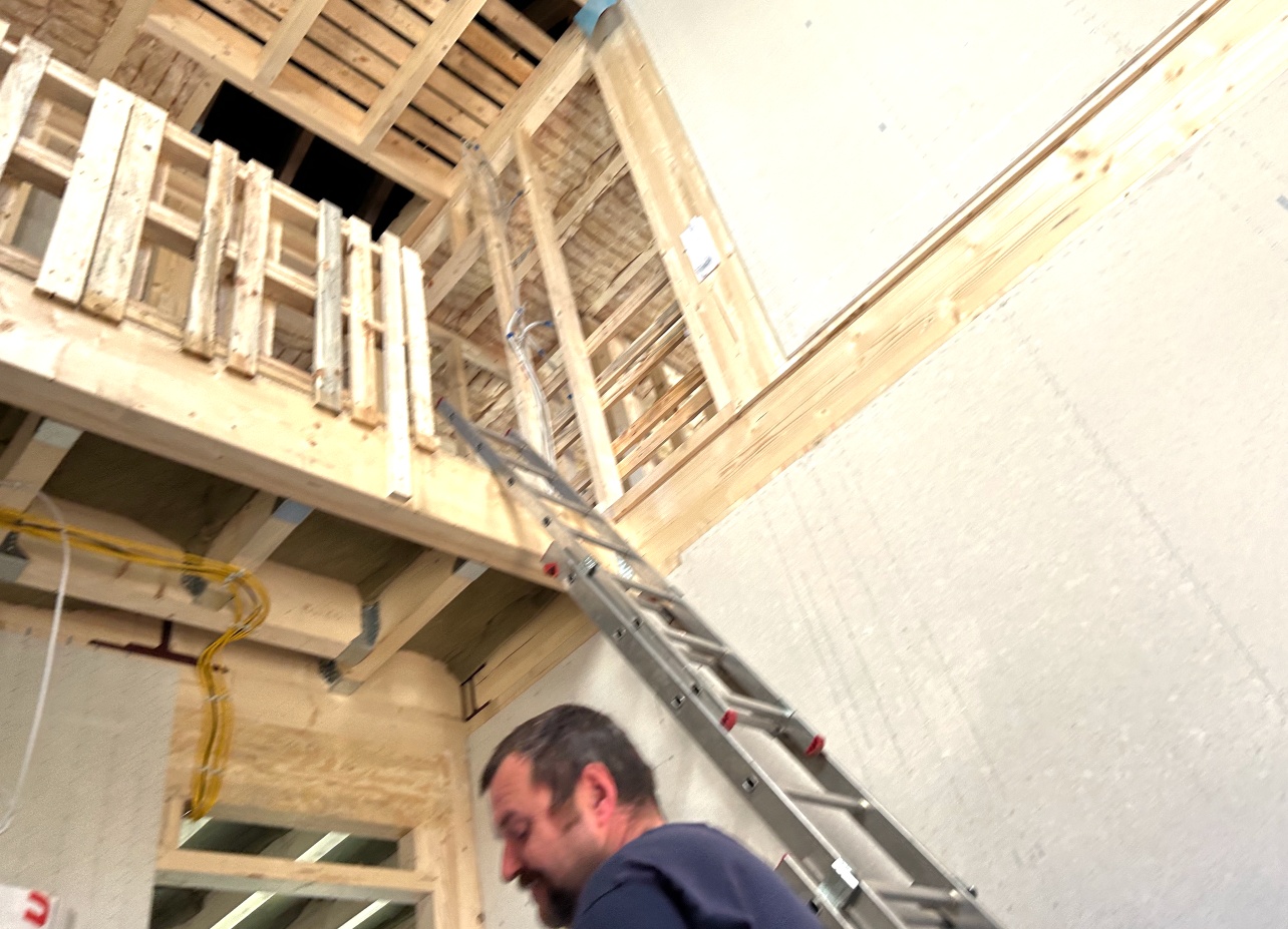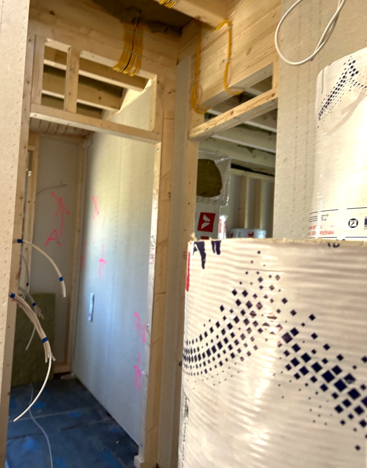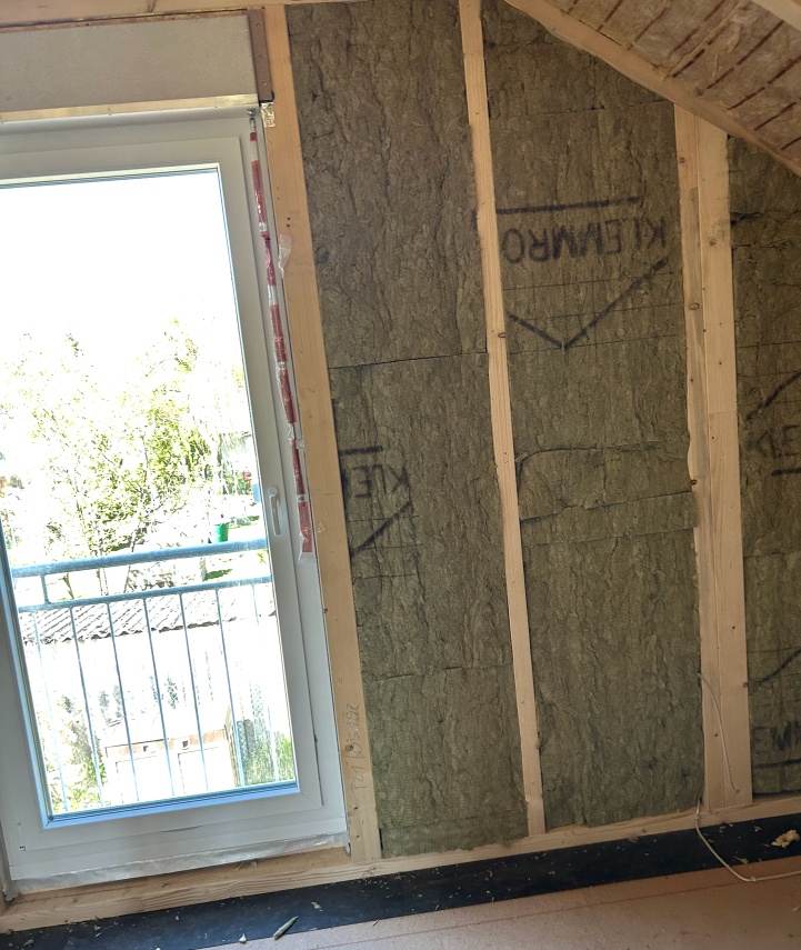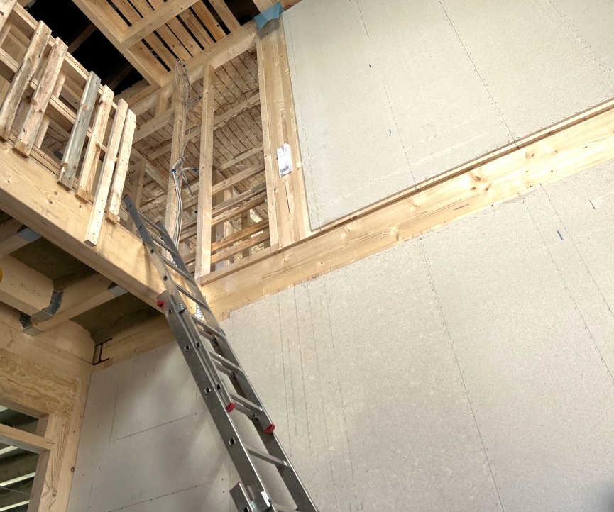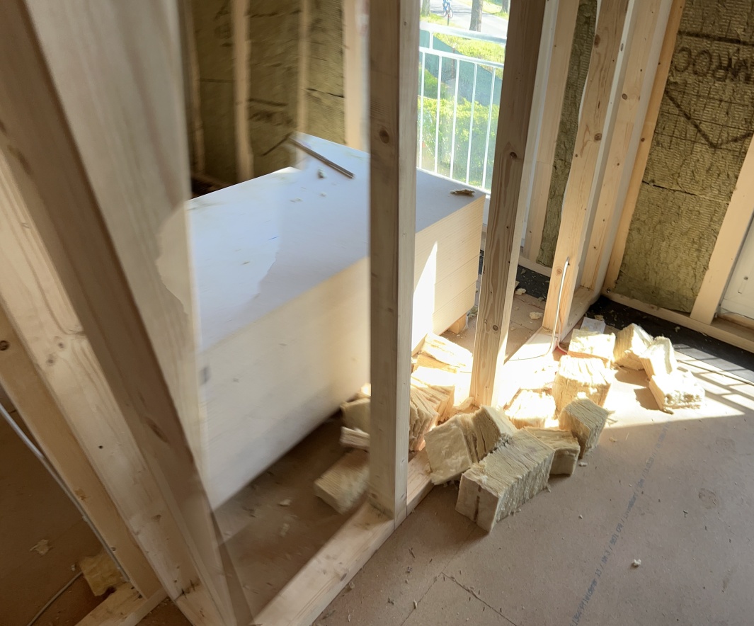 "Fachwerkhaus 2.0" (Böden: Massivholz, dann Schüttung, danach Estrich+ Bodenbelag, sowie bei den Wänden: Massivholz+ Doppelt-Fermazell und Steinwolle -> perfekte Dämmung, die die Vorschriften für einen Neubau mehr als erfüllt); hier unten ein anderes Massa-Haus, wie es schon direkt nach dem Stelltermin ausgesehen hat (Stelltermin meines eigenen Massa-Hauses: 21.-23.7.2025)